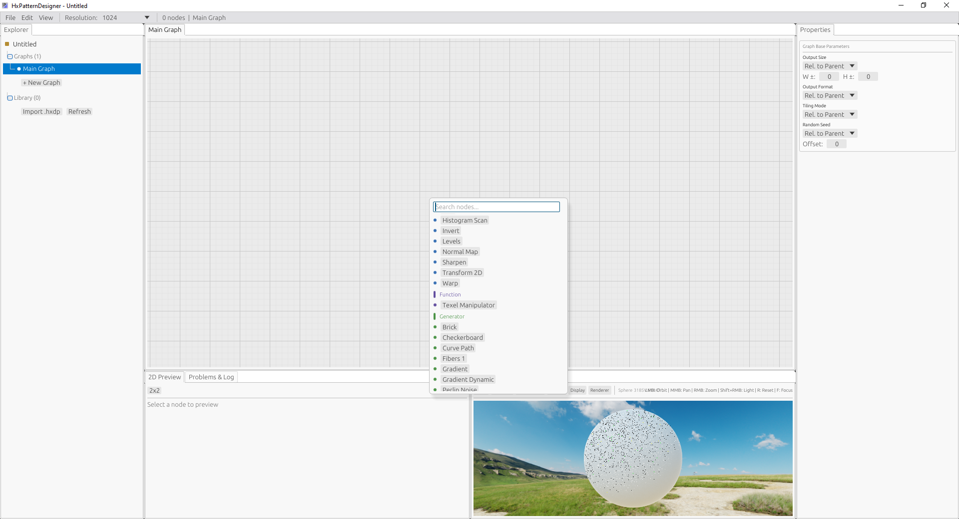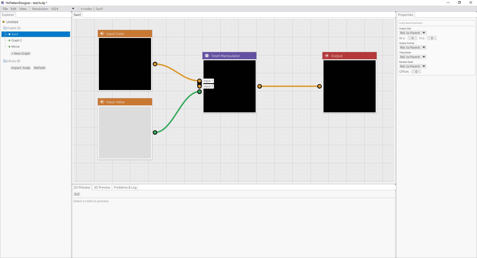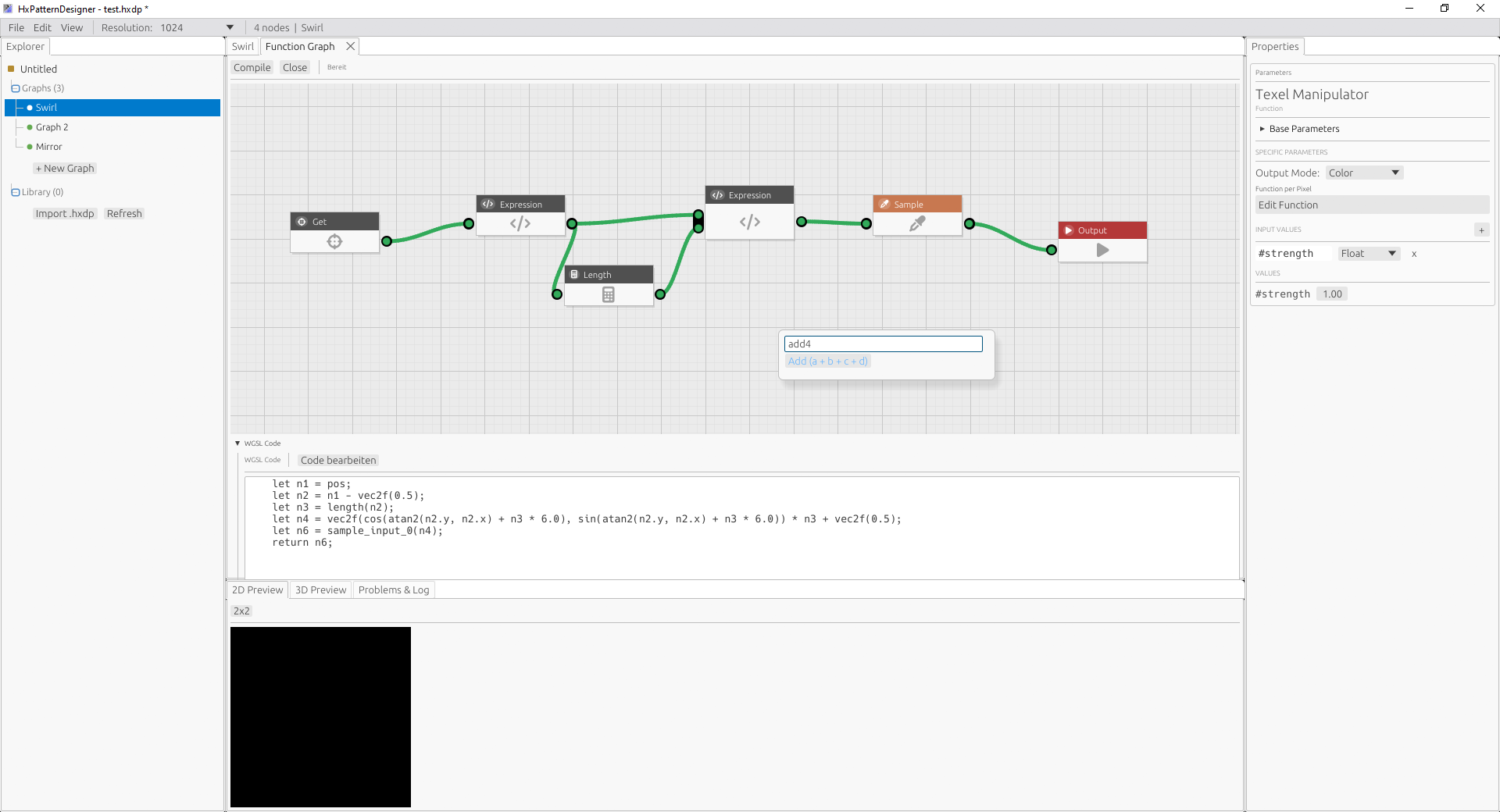 The main feature — building node graphs — is already functional.